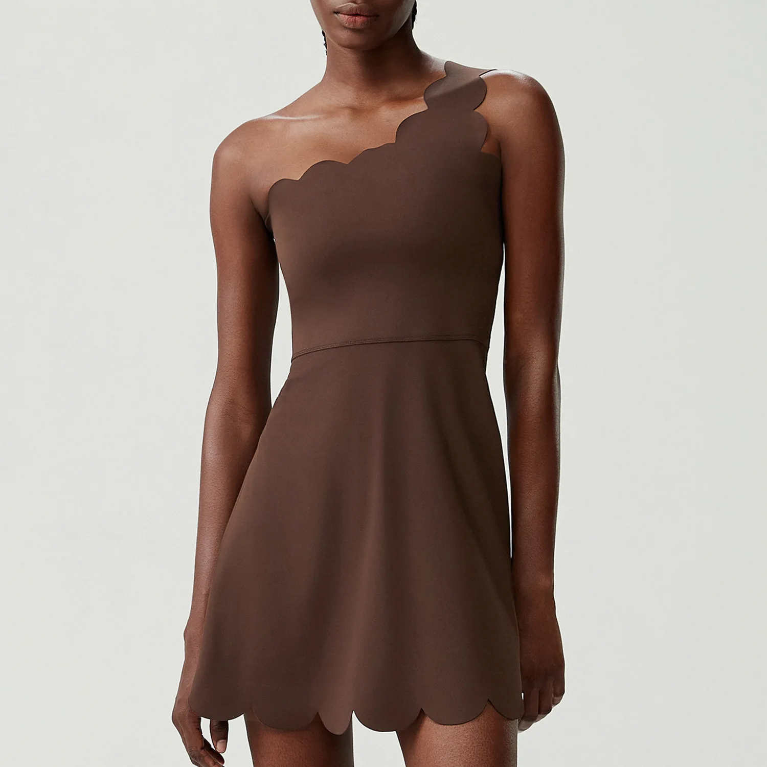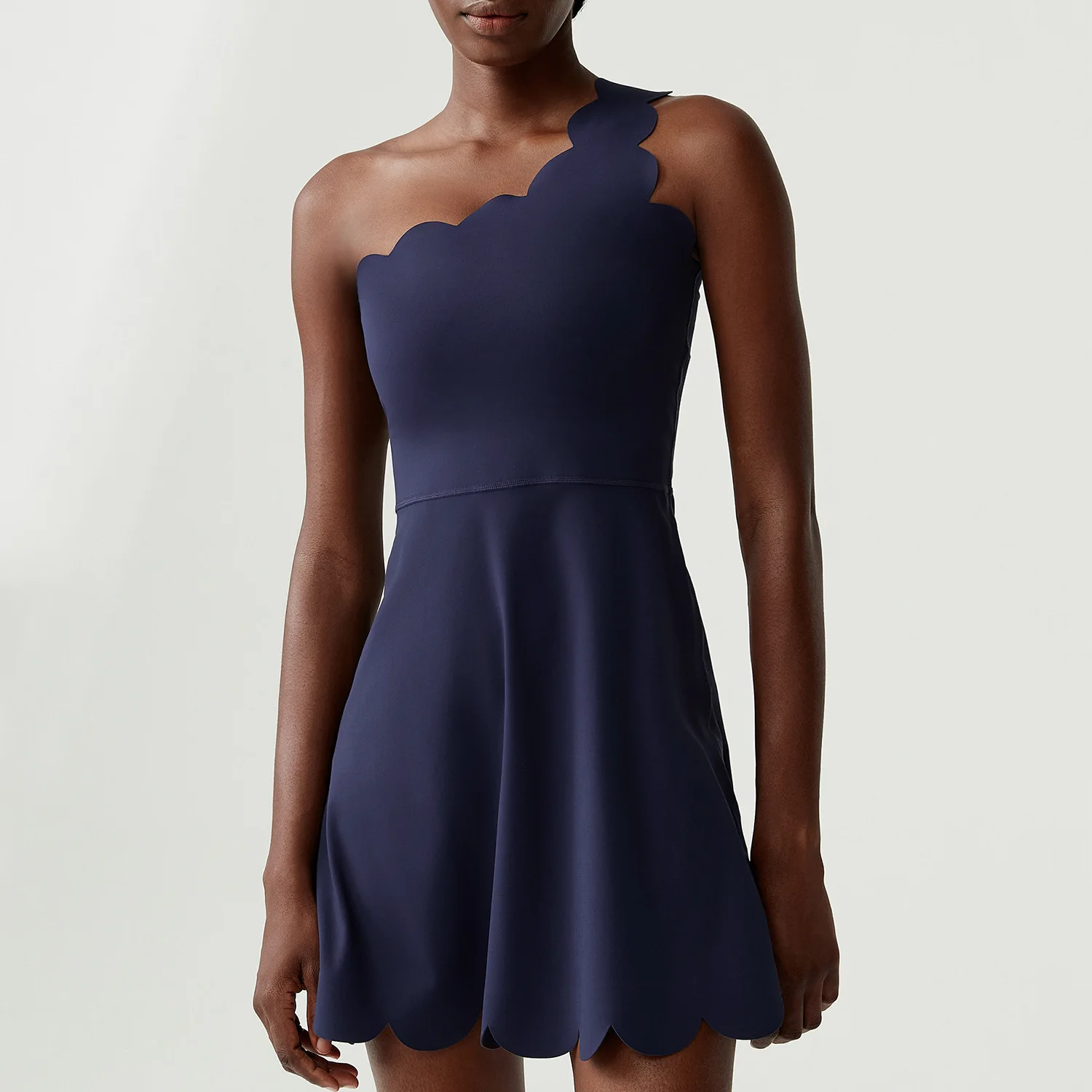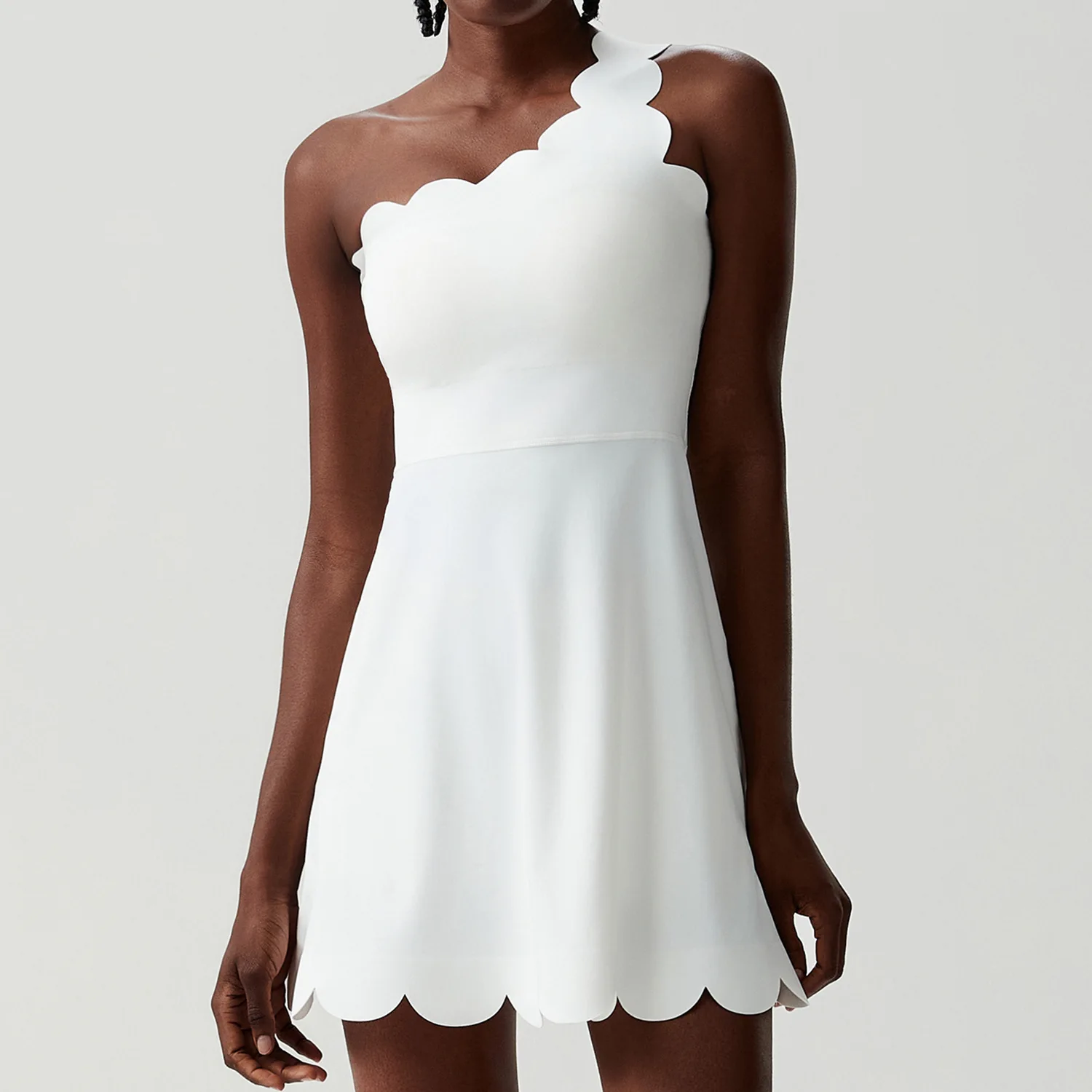 One Shoulder Two-pieces with Inner Pocket Shorts Yoga Dress for Women Fitness Workout Breathable Quick-dry Sportswear
